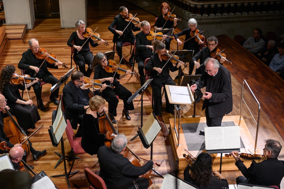 Herreweghe, fiel a su estilo, dirigió desde una gestualidad mínima, casi introspectiva, con una particular atención al final de las intervenciones solistas, buscando más la escucha que la imposición del gesto. Esta manera de conducir, tan peculiar como encantadora, refuerza la sensación de música compartida y de responsabilidad colectiva. La orquesta respondió con solvencia y coherencia estilística, aunque volvió a ponerse de manifiesto una cuestión recurrente en ciertas lecturas historicistas. La búsqueda de claridad y ligereza debería ir acompañada de una mayor profundidad sonora, evitando una planicie tímbrica que, en algunos momentos, resta densidad expresiva al conjunto.