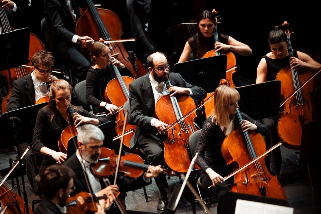 La orquesta mostró, con todo, un buen nivel en líneas generales. Hubo empaste, disciplina y una entrega apreciable en la gestión de una partitura que exige tanto músculo como introspección. Kai Gleusteen se mostró seguro en sus intervenciones de concertino, con esa mezcla de control y nobleza que ayuda a estabilizar el discurso en los momentos más expuestos. Alejandro Garrido, desde la viola, aportó una sonoridad majestuosa e impactante, de hermoso peso interno. Joaquín Arrabal, primer contrabajo, volvió a confirmarse espléndido y grandioso, dueño de esa autoridad callada que sostiene la base del edificio sonoro.