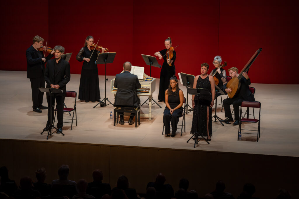 El problema mayor no residió en la voz humana sino en el diseño sonoro. La plantilla instrumental resultó insuficiente para el efecto que el conjunto quería proyectar. En repertorios de cámara histórica la economía de medios puede convertirse en virtud si cada músico posee la nitidez y el gusto de un solista de cámara. No fue este el caso. Hubo pasajes en que la cuerda aguda sonó desafinada, y ciertos acordes -por no decir muchos- no encontraron la resonancia que pide el pergoliano lamento. Llamó la atención que en las pausas entre movimientos el director, Christopher Monks, no aprovechara esos momentos para ordenar ajustes o correcciones. La ausencia de estas intervenciones, aparentemente simples, dejó al oyente con la impresión de una falta de escucha común en el podio, una omisión que terminó por penalizar el fraseo y la frase musical.